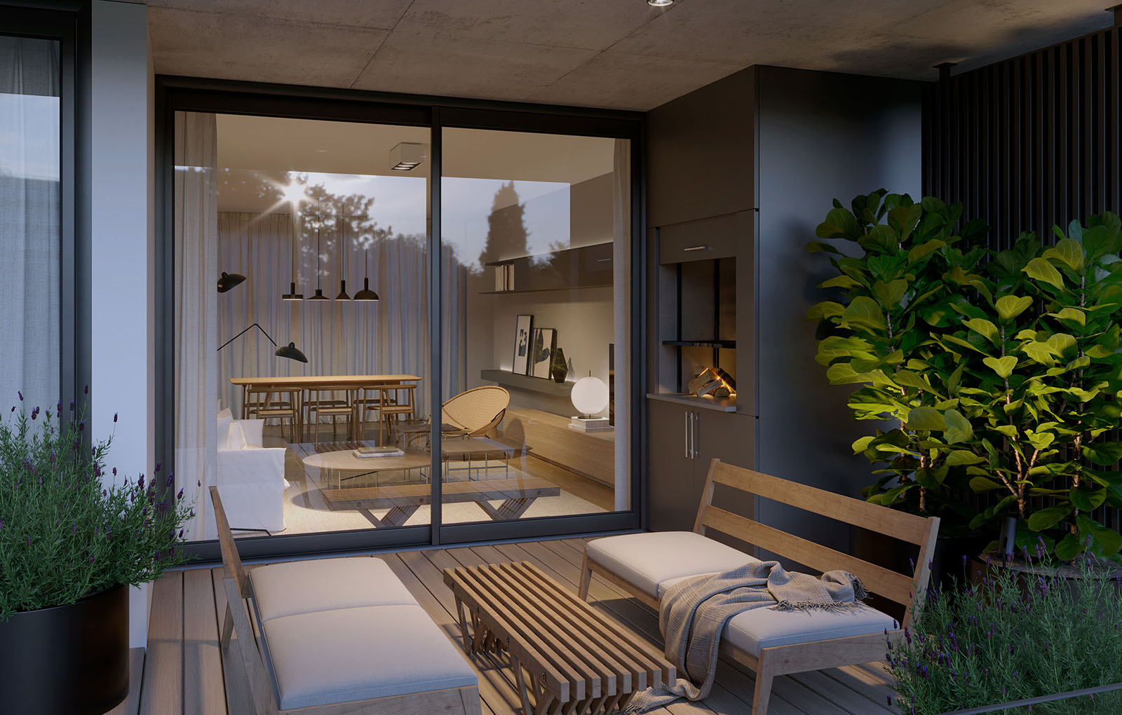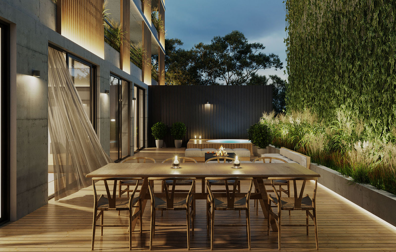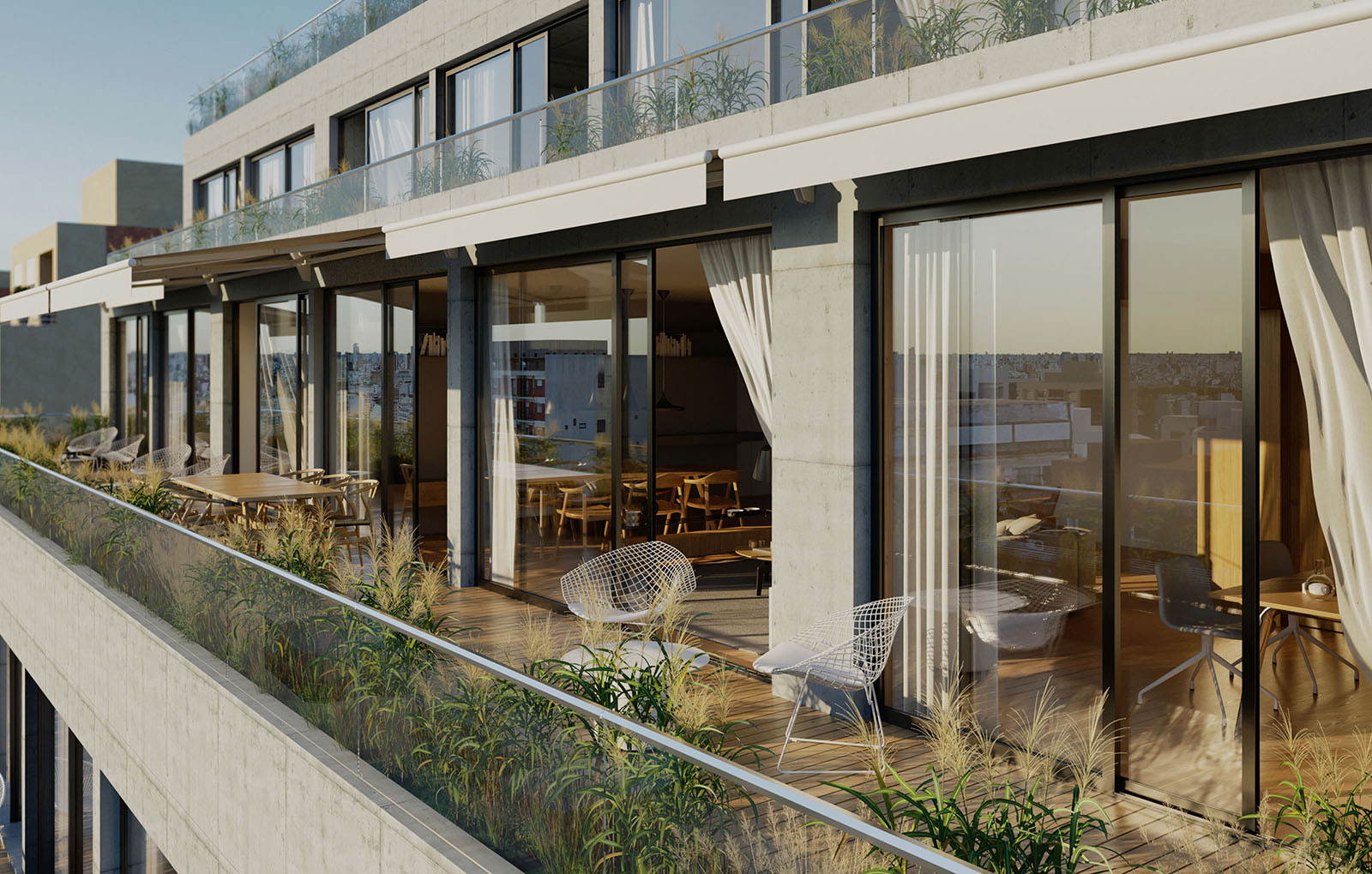 BALCONES CON DECK, MACETAS Y SISTEMA DE RIEGO