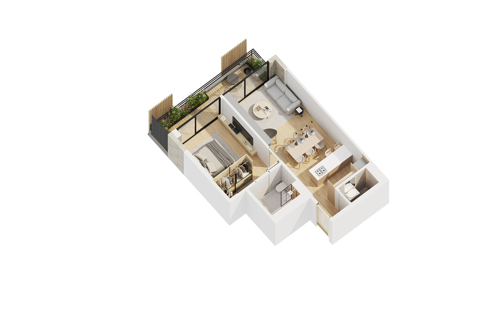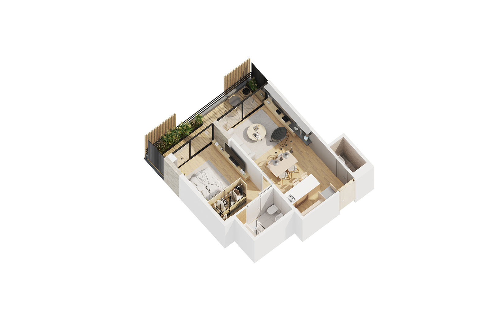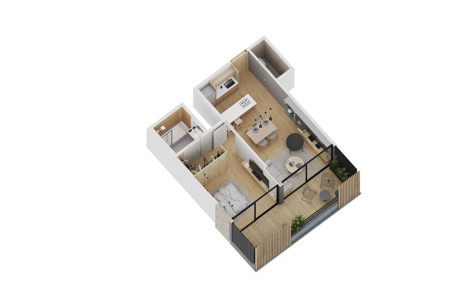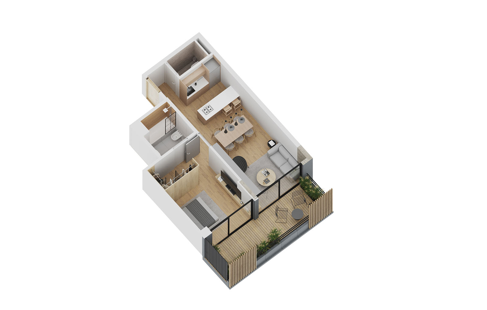 BALCONES CON DECK, MACETAS Y SISTEMA DE RIEGO